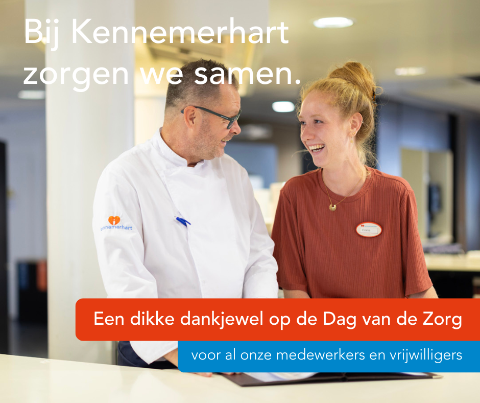 Zondag 12 mei is het de Dag van de Zorg. Een dag die draait om zorgprofessionals. Voor Kennemerhart het moment om onze medewerkers en vrijwilligers te bedanken dat ze er voor onze cliënten zijn. Aandacht vinden wij belangrijk. Aandacht voor de cliënt, aandacht voor de mensen met wie we werken en aandacht voor de mensen om ons heen. En daarom staan we bij Kennemerhart stil bij de Dag van Zorg met een klein presentje voor al onze medewerkers en vrijwilligers. Dank jullie wel!