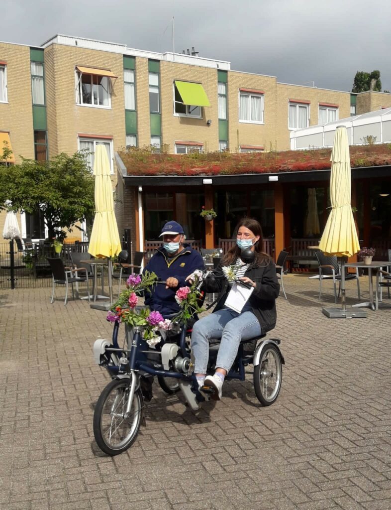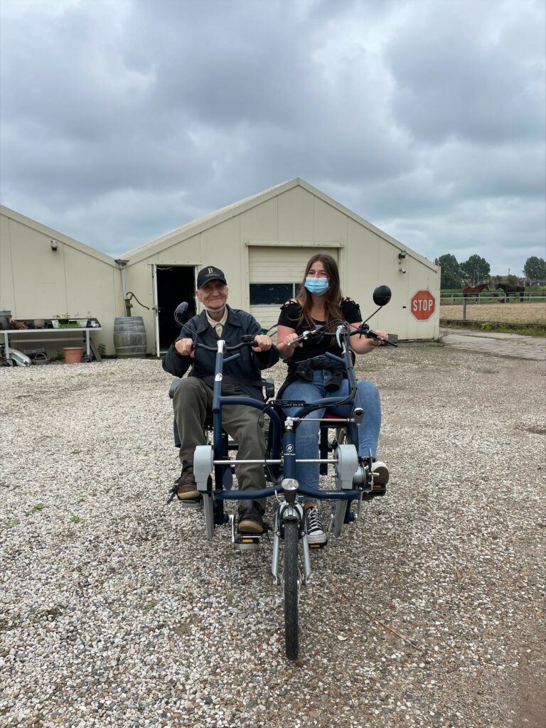 ​​​​​​​Deelnemers van Kennemerhart Oppeppers Ramplaanhart fietsten met de duofiets of onder begeleiding een verkorte route van 5 kilometer mee. Dit waren prachtige routes! Zo ging de route door Overveen, over de Zeeweg en over de Brouwerskolkweg. Tijdens het fietsen kwamen mooie verhalen van onze deelnemers naar boven. Zowel gebeurtenissen en herinneringen die zij hier beleefd hebben, als wat er nu bij hen bovenkwam. De deelnemers waren erg onder de indruk van de duofiets en vonden het heel fijn om niet per se te hoeven fietsen, maar toch een ronde op de fiets te kunnen zitten! Voor mijzelf was dit ook een mooie ervaring door alles wat ik hoorde en de fijne gesprekken die ik heb kunnen voeren. Woorden en zinnen van de deelnemers tijdens de fietsrit waren: 'sensationeel', 'wat fijn dat ik na zo'n lange tijd weer kon fietsen', 'dit doet me echt denken aan mijn jeugd', 'vroeger fietste ik hier ook altijd'. Kortom dit was voor onze deelnemers een erg geslaagd evenement!