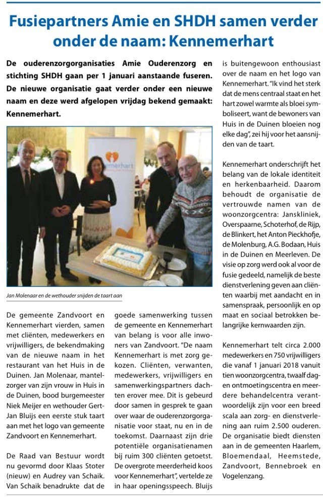 Fusiepartners Amie en SHDH samen verder onder de naam: Kennemerhart